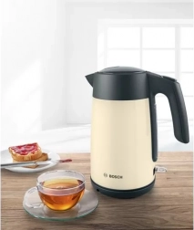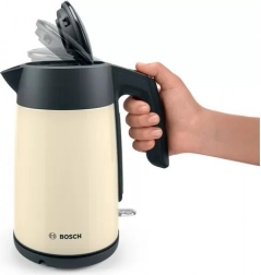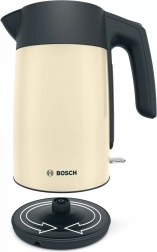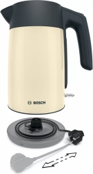 Bouilloire électrique Bosch dans une élégante couleur beige, capacité 1,7 litre, offrant un design moderne et une grande fonctionnalité. Grâce à l’indicateur pour une seule tasse, vous pouvez économiser du temps et de l’énergie lors de l’ébullition de l’eau.