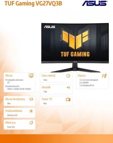L’ASUS TUF Gaming VG27VQ3B est un moniteur de jeu 27" qui combine un affichage incurvé pour une immersion accrue, une réactivité fulgurante de 1 ms et des connexions pratiques via 2× HDMI et DisplayPort. Grâce aux optimisations gaming et à la conception robuste TUF, il est idéal pour les joueurs recherchant des performances stables sans compromis.