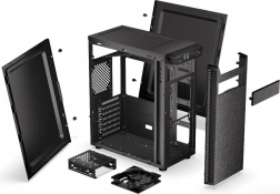 L’Armis 100 Solid peut accueillir jusqu’à cinq disques 2,5" et jusqu’à deux disques 3,5", avec deux baies 5,25" supplémentaires. Compatible avec des cartes graphiques jusqu’à 335 mm de longueur et des refroidisseurs CPU jusqu’à 165 mm de hauteur, elle convient aux cartes ATX, mATX et ITX.