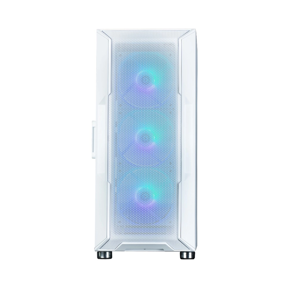 Boîtier ATX Mid‑Tower blanc élégant avec vitre panoramique et panneau mesh frontal offrant un airflow exceptionnel, 4 ventilateurs ARGB 120 mm préinstallés et un contrôleur ARGB intégré. Grâce aux ports I/O supérieurs facilement accessibles et aux filtres anti‑poussière magnétiques, montez une configuration de jeu ou de travail propre, silencieuse et efficacement refroidie.