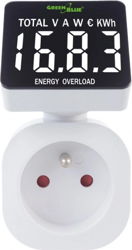 Le compteur d’énergie GREENBLUE GB620E est un assistant malin pour économiser à la maison. Il suffit de le brancher entre la prise et l’appareil pour voir immédiatement la consommation réelle d’électricité. Grâce à son écran rotatif et clair, vous vérifiez facilement la tension, le courant, la puissance en watts et la consommation totale en kWh, avec estimation du coût. Cela vous permet d’ajuster vos habitudes et de réduire les consommations inutiles.