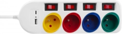 Quatre prises colorées avec sécurité enfant garantissent une utilisation sûre dans les foyers avec enfants et facilitent l’identification de chaque appareil.