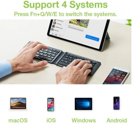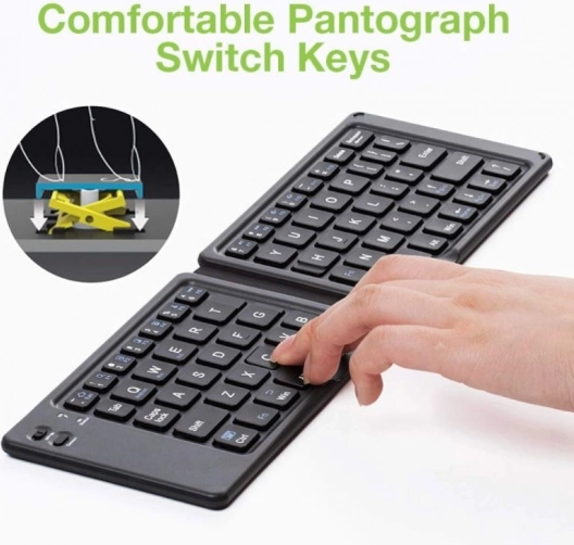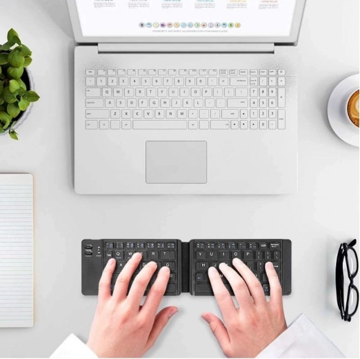 Clavier léger et compact se replie en un petit rectangle, facile à glisser dans une poche ou un petit sac. Idéal pour le travail en déplacement.