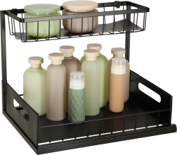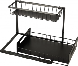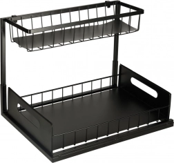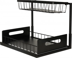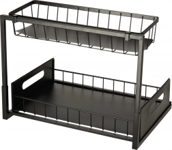 Organisateur métallique sous évier à deux niveaux, noir, panier coulissant