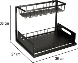 Pratique, l’organisateur sous évier à deux niveaux aide à maximiser l’espace dans le placard et à maintenir un ordre impeccable. Le niveau inférieur avec panier coulissant facilite l’accès aux objets rangés, tandis que le panier supérieur est idéal pour les petits accessoires. Sa structure métallique résistante en élégant coloris noir garantit une longue durée de vie.