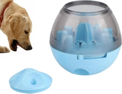 Cette balle ingénieuse fait office de distributeur de friandises et de jouet interactif. L’animal voit et sent les friandises; il pousse la balle avec le museau ou la patte – chaque mouvement est récompensé par la libération d’une petite portion. Le bloqueur du labyrinthe interne limite la quantité distribuée et encourage une alimentation lente, bénéfique pour la digestion et prévenant la gloutonnerie.