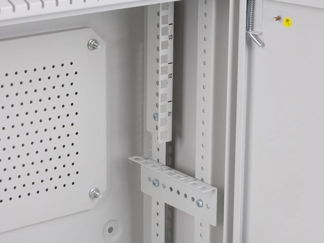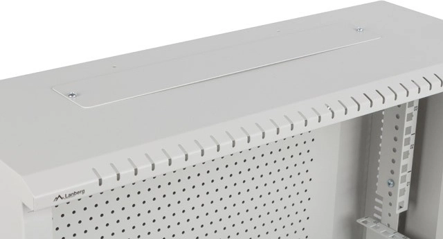 L’armoire est livrée entièrement assemblée dans un seul colis. Les portes ouvrables des deux côtés simplifient la maintenance et l’accès. Les ouvertures de ventilation intégrées sur les panneaux supérieur, inférieur et latéraux assurent un flux d’air et une température interne stable. Les passe-câbles dévissables permettent le montage de panneaux brosse LANBERG et maintiennent un câblage ordonné.