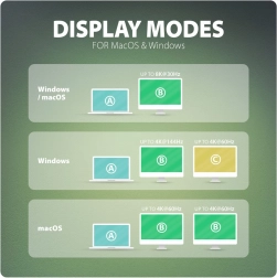 HDR (10 bit), HDCP 1.4/2.3, TMDS, Hot Plug, jusqu’à 8 canaux LPCM, prise en charge AC‑3/DTS/HBR ; sous macOS généralement max. 60 Hz ; nécessite DP Alt Mode min. 1.4 ou Thunderbolt 4
