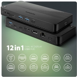 Concentrateur USB multiports 12‑en‑1 AXAGON HMC-U4, USB4 40 Gb/s, vidéo 8K, PD 100 W