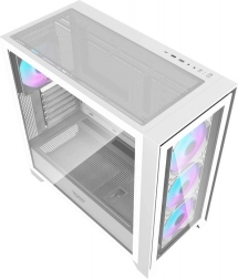 Créez une configuration propre et performante avec un accent sur le design. Les panneaux en verre trempé à l’avant et sur le côté mettent en valeur vos composants et effets RGB, tandis qu’un flux d’air bien pensé assure des températures stables même sous forte charge. Le boîtier prend en charge les cartes mères ATX / M-ATX / ITX, des cartes graphiques jusqu’à 395 mm et des refroidisseurs CPU jusqu’à 185 mm.