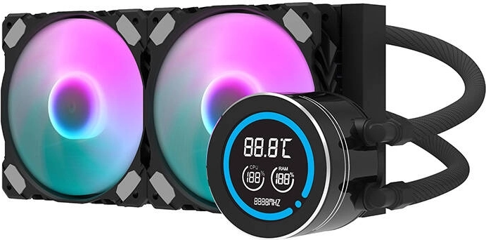 Le refroidisseur à eau compact et puissant Darkflash DN-D240 offre un refroidissement stable du processeur à basse température grâce au bloc de cuivre et au radiateur en aluminium. Équipé de deux ventilateurs de 120 mm avec régulation PWM et éclairage ARGB, il assure un flux d'air optimal et un fonctionnement silencieux.
