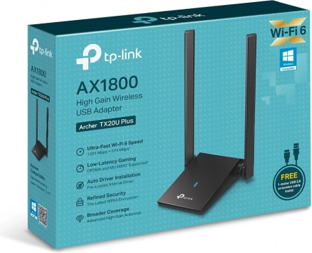 L’adaptateur TP-Link Archer TX20U Plus est conçu pour apporter les toutes dernières technologies Wi‑Fi 6 à vos appareils, avec des vitesses sans fil allant jusqu’à 1800 Mb/s. L’antenne Wi‑Fi haute performance assure une excellente couverture et une stabilité du signal même sur de longues distances.
