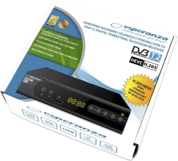 Décodeur moderne pour la réception de la télévision numérique terrestre DVB-T/T2 avec prise en charge des codecs HEVC/H.265 et MPEG-4/H.264. Offre une sortie Full HD 1080p, l’enregistrement PVR et le Timeshift, une connexion via HDMI et SCART, un port USB pour la lecture et l’enregistrement, ainsi qu’un son numérique de qualité AC3/E-AC3.