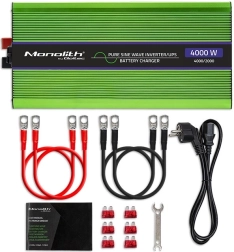 Convertisseur de tension Monolith d’une puissance de 4000 W combinant les fonctions avancées d’un convertisseur, d’un chargeur de batterie et d’un onduleur UPS. Idéal pour alimenter les équipements électroniques sensibles grâce à l’onde sinusoïdale pure.