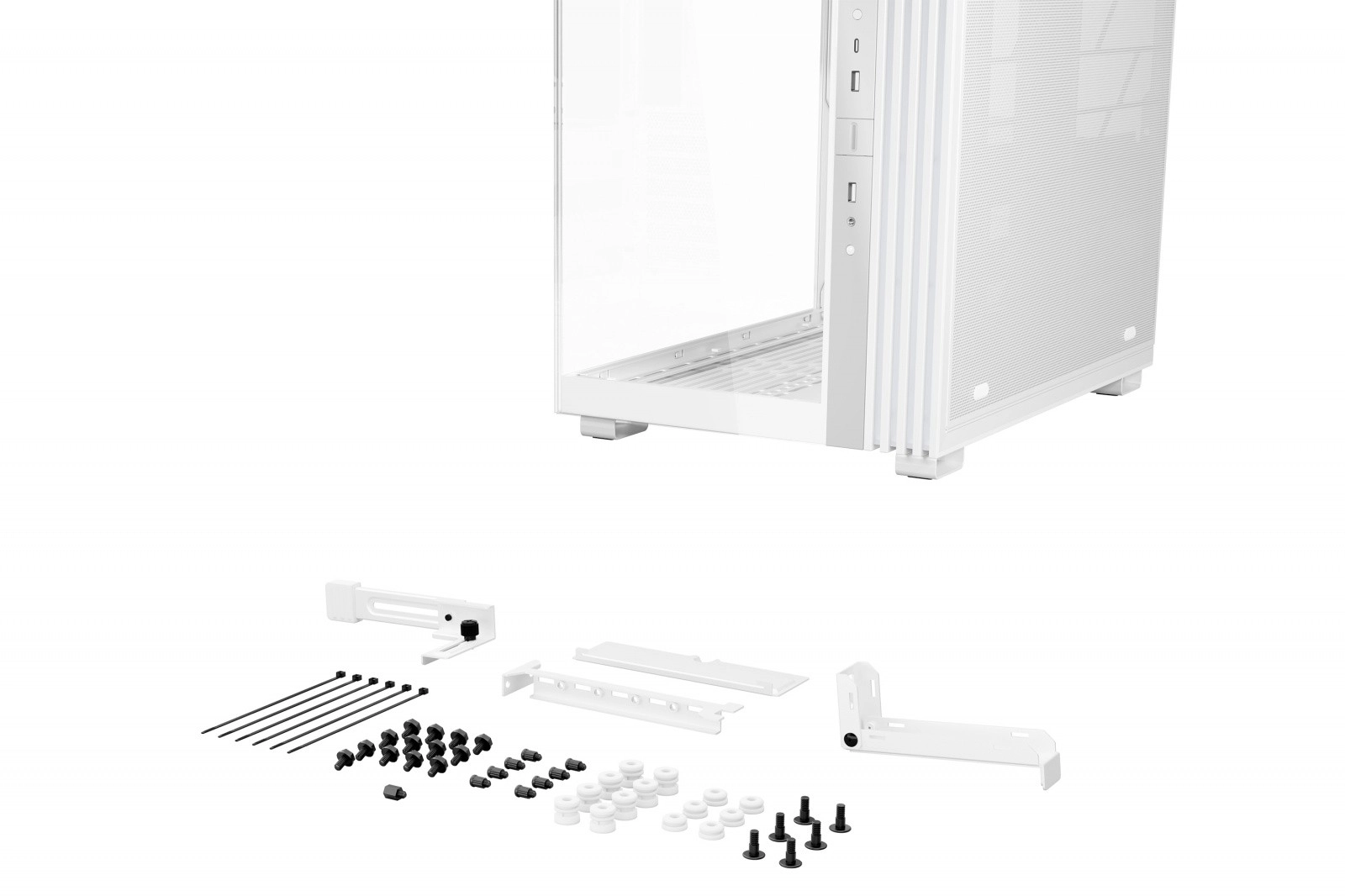 La Light Base 600 DX Blanc dispose d’un support VGA universel empêchant l’affaissement du GPU. Et le meilleur pour la fin : ce support fonctionne quelle que soit l’orientation, avec une carte graphique installée à l’horizontale comme à la verticale. Le résultat est un aspect net, même avec des cartes graphiques grandes et lourdes.