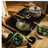 Le fond à triple épaisseur assure une répartition optimale et uniforme de la chaleur, contribuant à une cuisson efficace. La poêle est compatible avec tous les types de plaques, y compris à induction, et résiste à des températures élevées jusqu’à 270 °C. Elle peut également être utilisée au four jusqu’à 150 °C et est compatible lave-vaisselle.