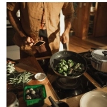 La poêle convient à tous les types de plaques, y compris à induction, et résiste à des températures allant jusqu’à 270 °C.
