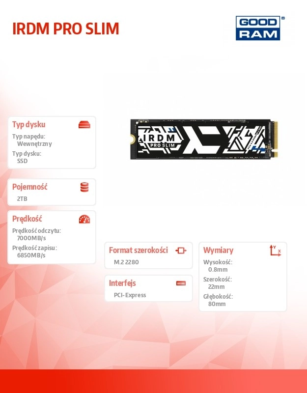 Le SSD performant IRDM PRO SLIM d’une capacité de 2 To au format M.2 NVMe 2280 offre des vitesses fulgurantes allant jusqu’à 7000 Mo/s en lecture et 6850 Mo/s en écriture. Idéal pour les consoles de jeu nouvelle génération, les ordinateurs portables puissants et les PC de bureau, où stabilité, fluidité et fiabilité sous forte charge sont essentielles.