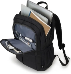 Le compartiment verrouillable pour ordinateur portable offre une double protection à votre appareil de 15 à 17,3 pouces : grâce à un rembourrage périphérique en mousse haute densité (HDF) et à une fixation fiable via une sangle de sécurité élastique. Le compartiment principal spacieux offre suffisamment de place pour des documents ou d’autres objets essentiels. Grâce au compartiment pour tablette jusqu’à 12,9" et à la sangle pour transporter vos écouteurs en douceur, vos compagnons de voyage sont parfaitement en sécurité. La grande poche frontale aide à garder l’ordre grâce à des compartiments fonctionnels pour smartphone, powerbank, stylos et autres accessoires mobiles. Les poches extérieures peuvent accueillir une bouteille d’eau et un parapluie, libérant ainsi de la place à l’intérieur du sac à dos. Le rembourrage dorsal ergonomique, la bretelle confortable et la sangle pour trolley à l’arrière garantissent un transport aisé vers le travail, l’université ou lors de voyages plus longs.