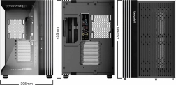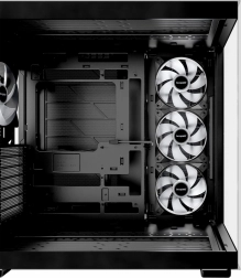 De grands panneaux transparents à l’avant et sur le côté offrent une vue panoramique remarquable sur tous les composants de l’ordinateur.