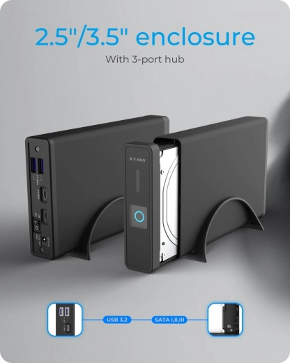 Boîtier externe ICY BOX pour HDD/SSD 2,5"/3,5" avec USB‑C et hub USB