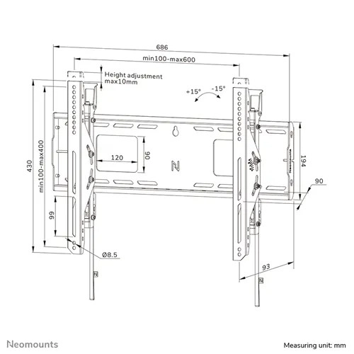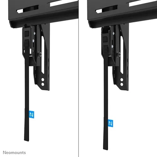 Grâce à l’inclinaison sans outil de +15°/-15°, vous réglez rapidement l’angle de vision idéal. Des consoles individuellement réglables (±10 mm) facilitent l’alignement en hauteur et l’ajustement du tilt horizontal, pour une pose précise même sur des surfaces moins planes. La mécanique à déverrouillage rapide pull & release permet une mise en place et un retrait sûrs de l’écran, tandis que le verrou anti-soulèvement évite tout basculement involontaire lors des manipulations.