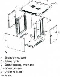 L’installation et la maintenance sont accélérées grâce aux montants clairement gradués 4U et aux panneaux latéraux facilement amovibles avec serrures incluses. Le panneau supérieur est prêt pour l’installation de deux ventilateurs pour un refroidissement efficace et comporte un passe‑câbles pour un cheminement propre.
