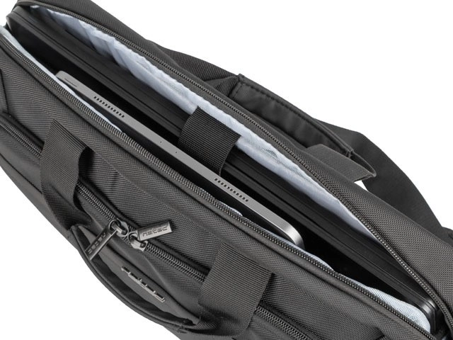 NATEC Kudu est un partenaire fiable au bureau comme en déplacement. Le compartiment principal à deux séparations est doux et rembourré pour un rangement sécurisé de l’ordinateur jusqu’à 15,6" et de la tablette, tandis que la poche filet zippée garde câbles, chargeurs et souris bien organisés.