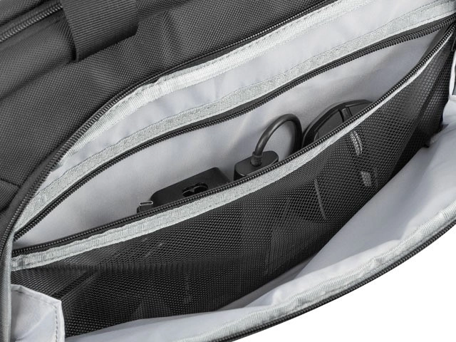 Le compartiment principal avec deux séparations rembourrées protège un ordinateur 15,6" et une tablette contre les chocs et les rayures.