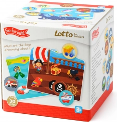Entrez dans le monde de l'aventure avec les cartes Lotto Far Far Land spécialement conçues pour les garçons. Cet ensemble apporte amusement et excitation à chaque petit aventurier.