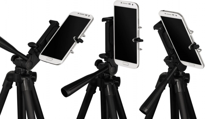 Support pratique pour smartphones et tablettes avec un pas de vis universel 1/4", permettant une fixation facile sur un trépied ou une perche télescopique. La pince à ressort avec rembourrage gomme‑mousse assure une fixation sûre et délicate sans rayures. Convient aux téléphones de 5,5 à 8,2 cm de largeur et aux tablettes de 11,2 à 18,5 cm (horizontalement).