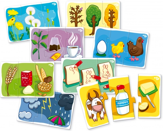 Far Far Land puzzle trio offre une activité amusante et éducative pour les enfants. Chaque ensemble contient 8 images de puzzle uniques composées de trois pièces, représentant des objets appartenant à un même thème.