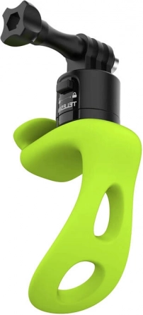 Le support en silicone multifonction TELESIN pour caméras sportives offre une installation et un retrait rapides, un réglage horizontal à 360° et vertical à 180° ainsi qu’une structure durable et flexible dans un design vert compact.