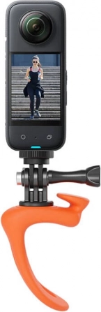 Support en silicone flexible Telesin pour caméras sportives. Montage en un clic, rotation 360°/180°. Compatible GoPro, DJI, Insta360. Orange.