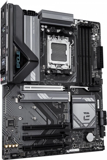 La carte offre une connectivité de pointe : Wi‑Fi 6E avec antenne directionnelle à haut gain et GbE LAN, sortie vidéo via HDMI et DisplayPort, et un slot PCIe UD 5.0 x16 renforcé offrant une résistance 10× supérieure pour la carte graphique. L’assemblage est simplifié grâce à EZ‑Latch Plus/Click (dissipateurs M.2 sans vis et dégagement rapide PCIe) et WIFI EZ‑Plug. Les utilisateurs apprécieront un BIOS clair avec Multi‑Theme, le contrôle des ventilateurs AIO et Q‑Flash auto‑scan.