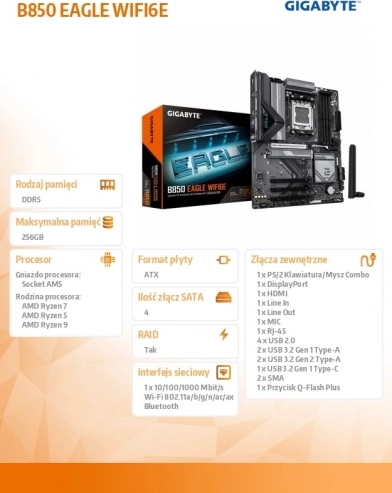 Entrez dans une nouvelle ère du jeu avec la B850 Eagle Wi‑Fi 6E. Activez en un clic le mode X3D Turbo, qui optimise les performances pour les processeurs AMD Ryzen 9000/8000/7000, y compris les modèles Ryzen 9000 X3D. Vous bénéficiez d’une jouabilité plus fluide, d’un taux d’images plus élevé et d’une réactivité accrue – un choix idéal pour les joueurs exigeants comme pour les créateurs.