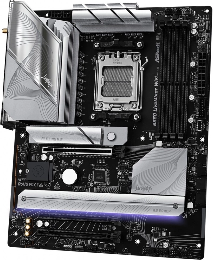 L’équipement équilibré comprend des interfaces modernes USB 3.2, des stockages M.2 rapides et une connectivité sans fil Wi‑Fi, pour connecter facilement périphériques, disques externes, caméras et interfaces audio. La B850 LiveMixer WiFi constitue ainsi une base fiable pour un PC performant dédié à la création de contenu et au jeu.