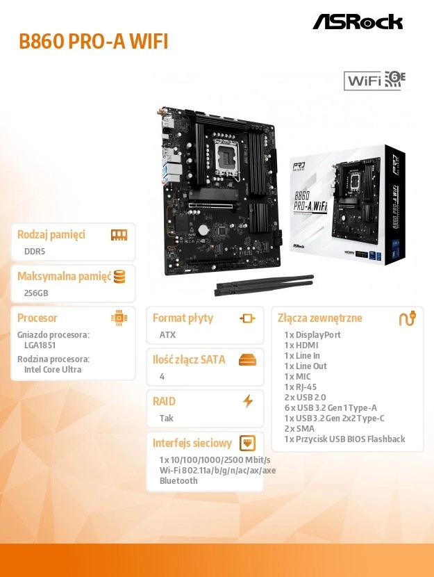 ASRock B860 Pro-A WiFi carte mère ATX avec DDR5