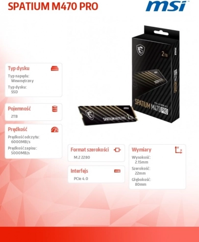 SSD MSI SPATIUM M470 PRO 2 To M.2 PCIe 4.0 NVMe
