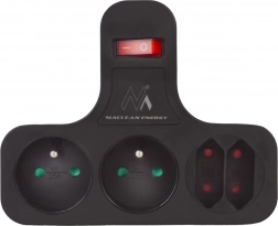 La multiprise Maclean Energy assure une utilisation sûre et efficace des appareils électriques. Grâce à ses quatre prises (2 plates et 2 de type Schuko), vous pouvez connecter plusieurs appareils simultanément et les contrôler facilement avec un seul interrupteur.