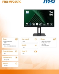 Le MSI PRO MP245PG est un moniteur IPS 23,8" polyvalent conçu pour la productivité et le confort. Grâce à sa résolution Full HD et à sa fréquence de 100 Hz, vous profitez d'un défilement fluide, d'une meilleure lisibilité et d'une réactivité accrue pour le travail quotidien comme pour le jeu occasionnel. Les bords fins favorisent le multitâche dans une configuration multi-écrans.