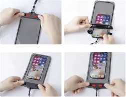 Le mécanisme de verrouillage à deux points scelle fermement l’étui et protège le téléphone même en immersion totale – idéal pour la natation et les sports nautiques.