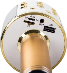 Le microphone karaoke Bluetooth sans fil permet une répétition pratique et amusante non seulement lors des soirées karaoke, mais aussi lors d’autres fêtes. Grâce à son design léger et pratique, il se transporte facilement et garantit une liberté de mouvement pendant le chant. Vous pouvez le connecter à votre smartphone ou tablette soit via Bluetooth, soit par câble USB, et ainsi utiliser le microphone aussi comme lecteur MP3. De plus, il est équipé d’une fonction selfie !