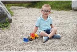Le chargement et le basculement sont simples et intuitifs : les enfants actionnent le godet par le mouvement du bras, sans piles.