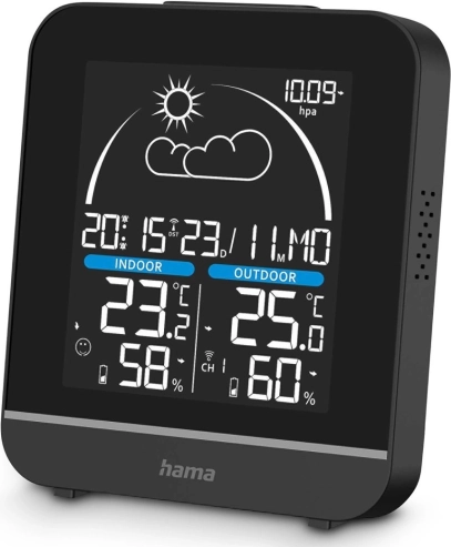La station météo numérique Hama La Gomera offre une vue d’ensemble complète de la météo. Grâce à la synchronisation horaire DCF et aux prévisions via 7 symboles, vous êtes toujours informé des conditions actuelles. Elle affiche la température et l’humidité à l’intérieur comme à l’extérieur grâce à un capteur extérieur sans fil.