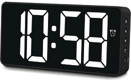 Ce réveil moderne au fini mat et à l’écran pratiquement sans bord s’intègre parfaitement à la chambre comme au bureau. Son grand écran bien lisible affiche l’heure, la date et la température. Vous pouvez choisir un affichage constant de la donnée sélectionnée ou le défilement automatique entre l’heure, la date et la température.