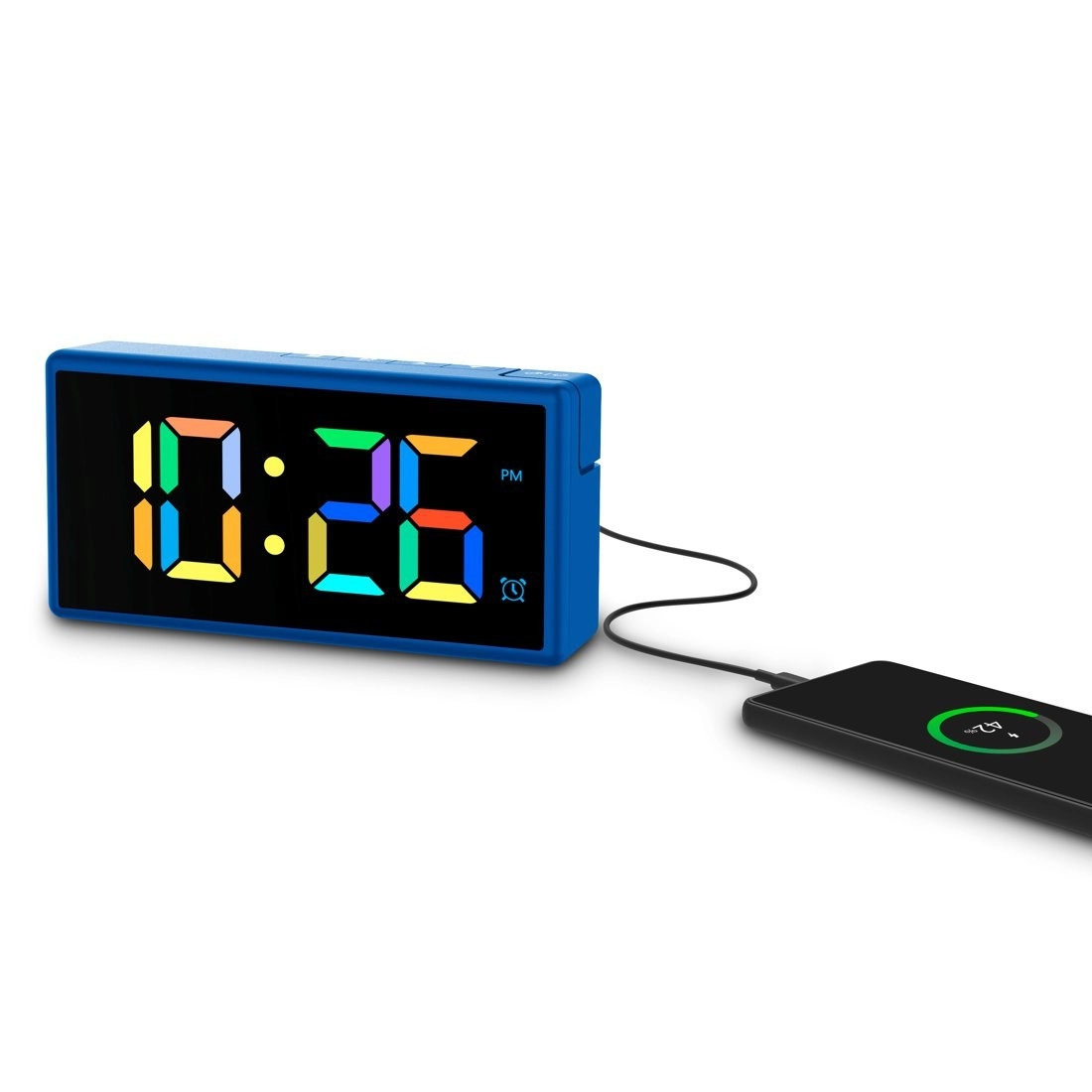 Réveil électronique Hama Ibiza bleu avec écran LED multicolore et charge USB