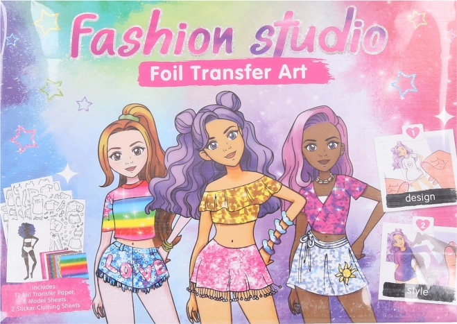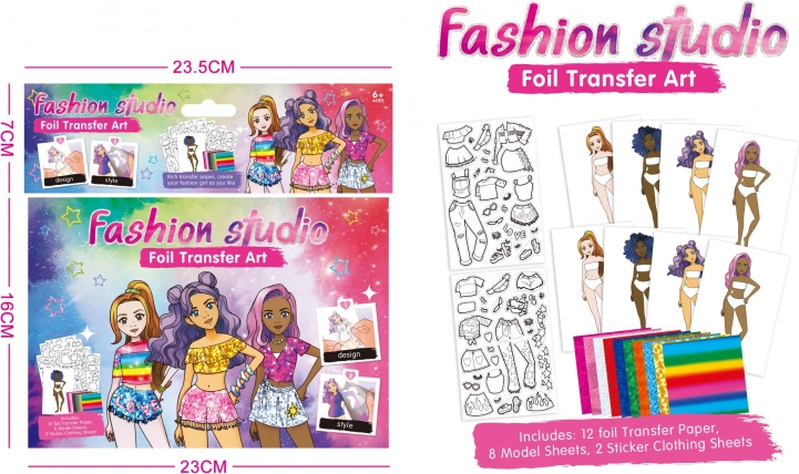 Découvrez votre créativité avec le portfolio de design, qui comprend 8 modèles, 2 feuilles de gabarits de vêtements et 12 feuilles adhésives colorées.