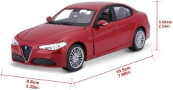 Modèle en métal de la série Bburago 1:24 Alfa Romeo Giulia (2016) rouge métallisé