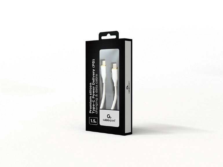 Câble USB‑C vers USB‑C blanc d’une longueur de 1,5 mètre, idéal pour les appareils équipés de ports Type‑C. Il prend en charge une puissance de charge de 60 W ainsi que la synchronisation des données, avec un design élégant et doux au toucher.